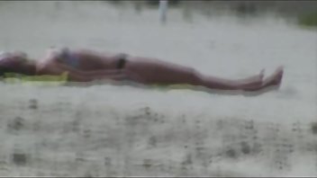 Три тощие порево в одежде девушки снимают одежду на нудистском пляже